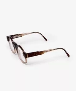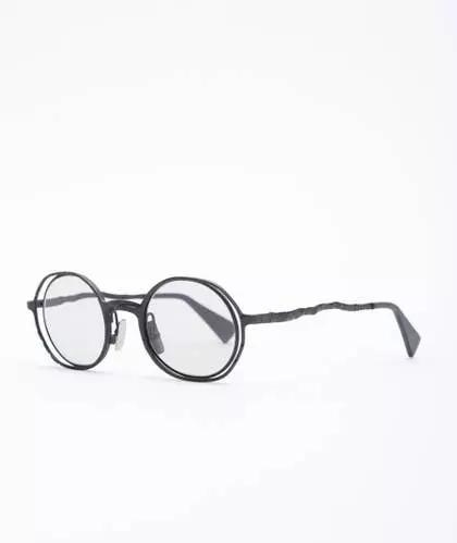 Gafas de KUBORAUM. Montura de metal negro mate con plaquetas nasales y fundas ajustables. Lentes transparentes no correctivas.