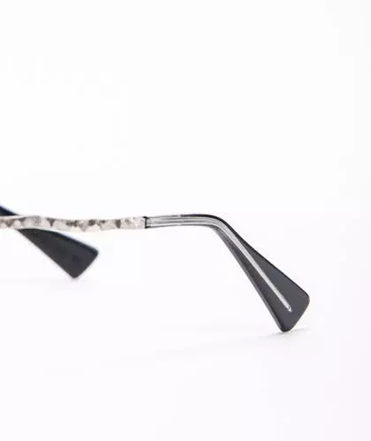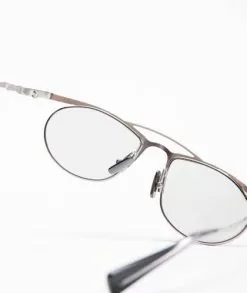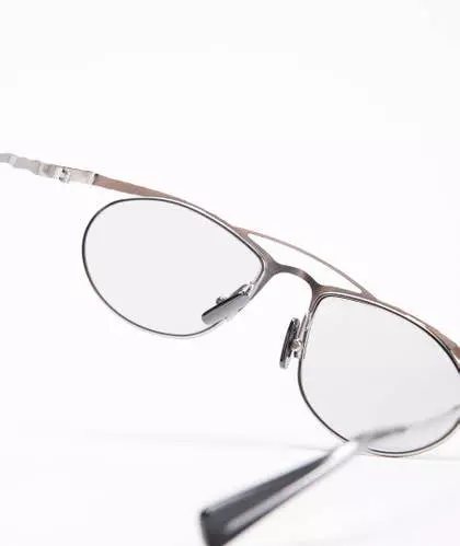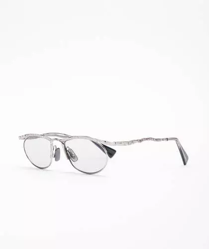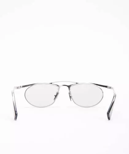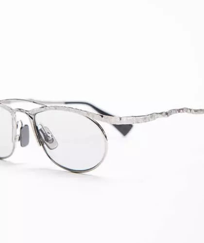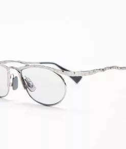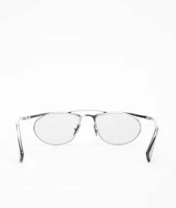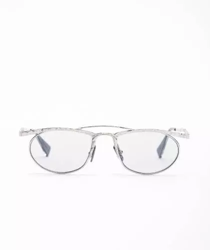 Gafas de KUBORAUM. Montura de metal plateado mate con plaquetas nasales y fundas ajustables. Lentes transparentes no correctivas.