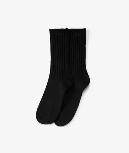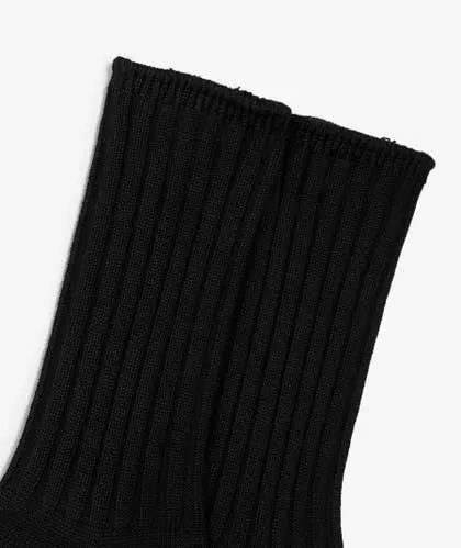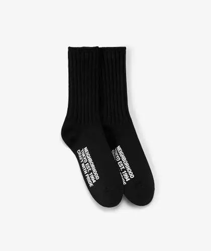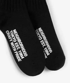 Calcetines negros acanalados con el logo de Neighborhood en blanco.