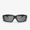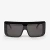 Gafas de sol anguladas de la más reciente colección de Rick Owens, Performa FW20. Elaboradas con un marco negro de nylon y lentes plateadas de alta protección UV.