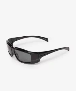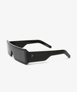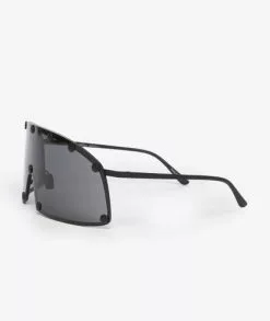 Gafas de sol anguladas de la más reciente colección de Rick Owens, Performa FW20. Elaboradas con un marco negro de nylon y lentes plateadas de alta protección UV.