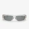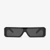 Gafas de sol de la última colección de Rick Owens elaboradas con un marco grueso de acetato color negro y una lente rectangular oscura de alta protección UV.