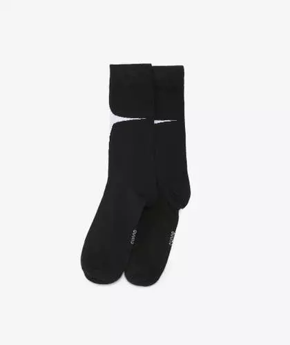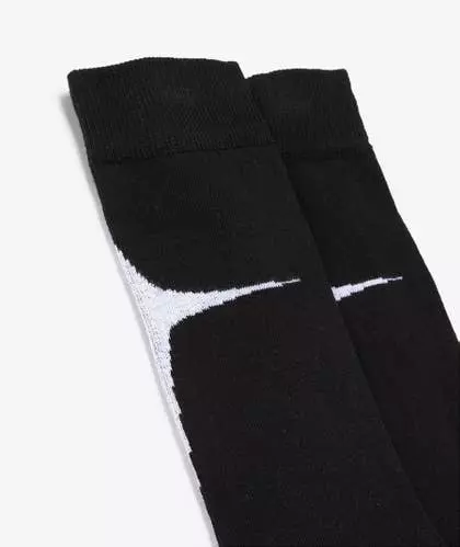 Estos calcetines midi de color negro están hechos en un punto suave de mezcla de algodón con detalles en contraste y el logo de SHOOP Clothing en la parte inferior.